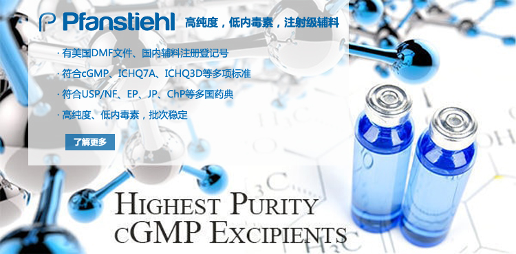“熱烈祝賀Pfanstiehl的注射級甘氨酸Glycine(G-140)喜獲CDE登記號F20250000403, 這是Pfanstiehl產品獲得的第18個CDE登記號!”甘氨酸在醫藥輔料制劑中應用廣泛,, 可作為緩沖劑,增溶劑,穩定劑等,具有諸多優勢。Pfanstiehl秉承一貫高品質理念,為滿足全球生物制藥行業對于高品質甘氨酸的需求,隆重推出的注射級甘氨酸Glycine (G-140), 具有超高純度,超低內毒素,超低金屬殘留的特點,單獨檢測29種金屬離子,并且新增DNA,RNA,DNA酶,RNA酶和脂肪酶,亞硝酸鹽等多項質量指標的檢測,符合多國藥典規定(USP, EP, BP, JPE, ChP),可用于生物治療性藥物和疫苗的生產。產品信息:· 產品名稱:Glycine, High Purity, Low Endotoxin, Low Metals, USP, EP, BP, JPE, ChP (G-140)· 中文名稱:甘氨酸· 分子式:C2H5NO2· 分子量:75.07 g / mol· CAS號:56-40-6· 產品貨號:G-140產品特點: · 超高純度,超低內毒素,超低微生物含量,超低金屬雜質殘留· 質量指標新增DNA,RNA,DNA酶,RNA酶,脂肪酶和亞硝酸鹽檢測· 符合多國藥典:USP, EP, BP, JPE, ChP· 符合ICH Q3D標準· 符合GMP標準· 已獲DMF和CDE登記號 產品應用:· 緩沖劑· 穩定劑· 增溶劑如果您對Pfanstiehl注射級別Glycine G-140感興趣,歡迎聯系Pfanstiehl 中國區代理商北京西美杰科技有限公司獲得如下詳細的產品概況說明文件和測試樣品。Pfanstiehl Inc.最新產品系列如下,歡迎聯系北京西美杰科技有限公司獲取100g裝免費樣品。北京西美杰科技有限公司為Pfanstiehl中國代理,為客戶提供完善的技術支持與售后服務。歡迎撥打西美杰客服電話400-050-4006或者登陸網站www_longquanren_com.fofazj.com了解更多信息。 更多>西美杰介紹